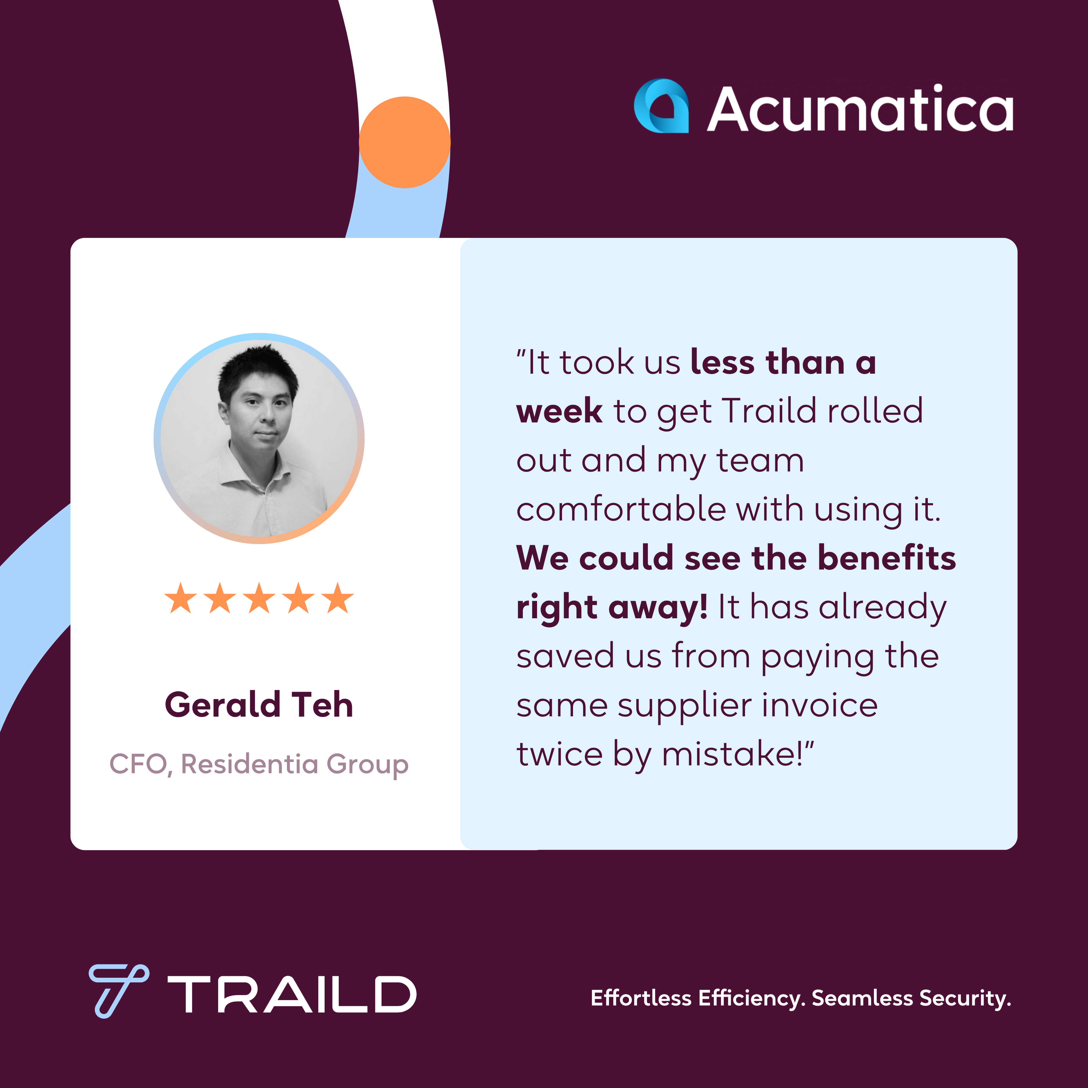Plus tôt vous ajouterez TRAILD à votre solution basée sur Acumatica Cloud ERP, plus tôt la productivité et la satisfaction des employés de votre équipe AP s’amélioreront de manière exponentielle.